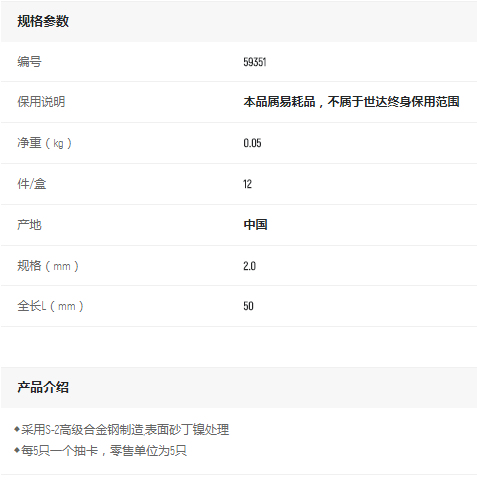 首頁>產品中心>螺絲批>旋具頭>世達6角旋具頭2mm