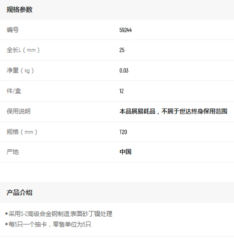 產(chǎn)品名字:世達(dá)5件套6.3mm系列25mm長(zhǎng)中孔花型旋具頭T20