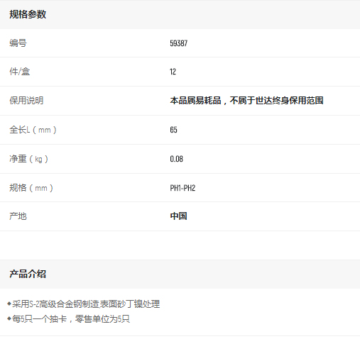 產(chǎn)品名字:世達(dá)6.3MM系列65MM長(zhǎng)雙頭旋具頭PH1-PH2