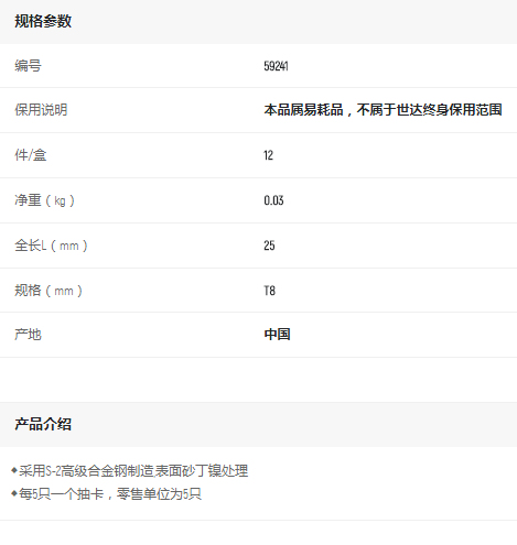產(chǎn)品名字:世達(dá)5件套6.3mm系列25mm長(zhǎng)中孔花型旋具頭TT8