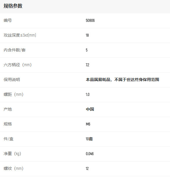 產品名字:世達5件套高速鋼復合絲錐M6*1.0mm