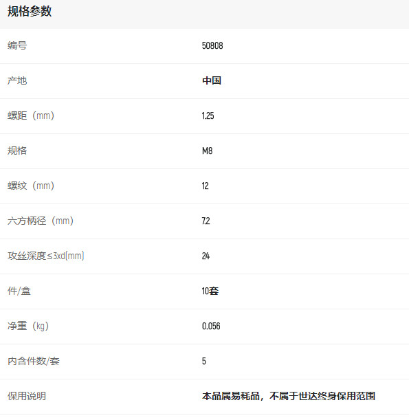 產(chǎn)品名字:世達(dá)5件套高速鋼復(fù)合絲錐M8*1.25mm