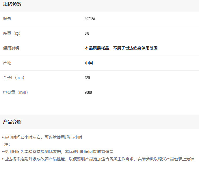 產(chǎn)品名字:世達(dá)充電式手電筒