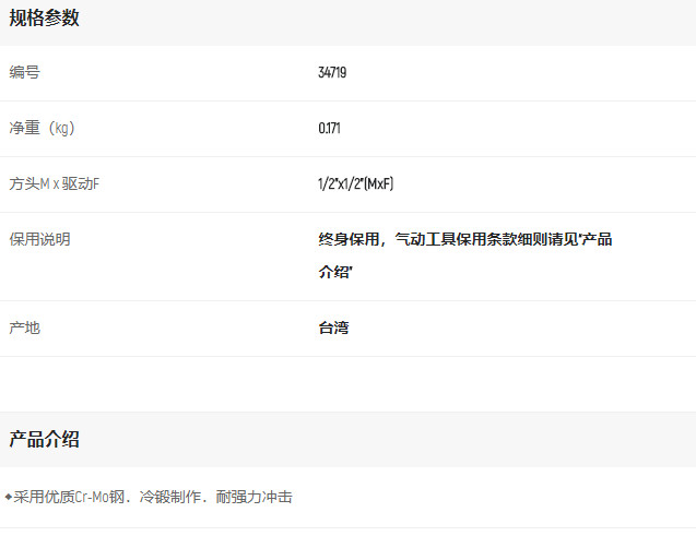 首頁>產品中心>扳手、手用套筒>套筒配件>世達風動萬向接頭1/2*1/2