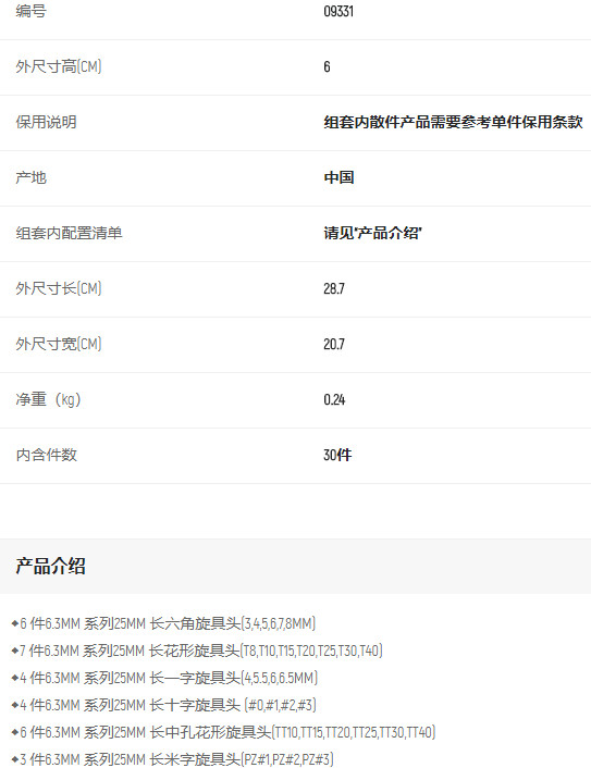 產(chǎn)品名字:世達30件6.3系列手動旋具頭組套