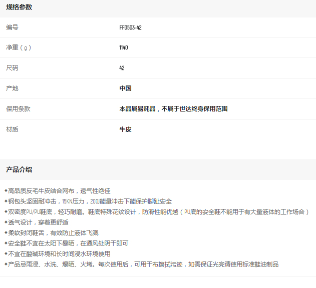 產品名字:世達休閑款保護足趾電絕緣安全鞋42碼