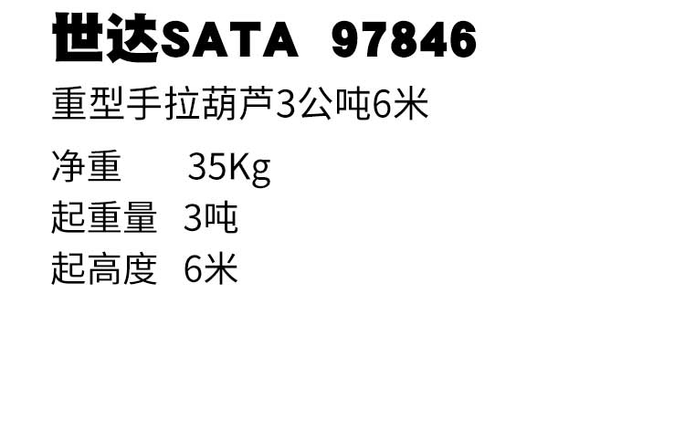 首頁>產品中心>起重吊裝>手拉葫蘆>世達重型手拉葫蘆3公噸6米