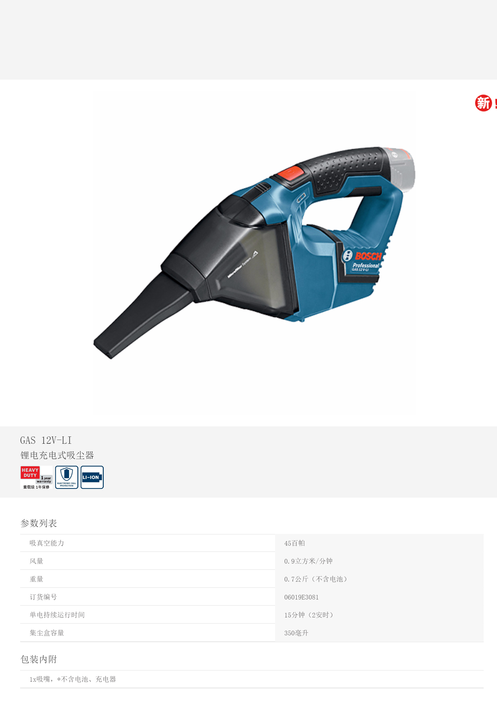 產(chǎn)品名字:博世吸塵機GAS12V-LI裸機