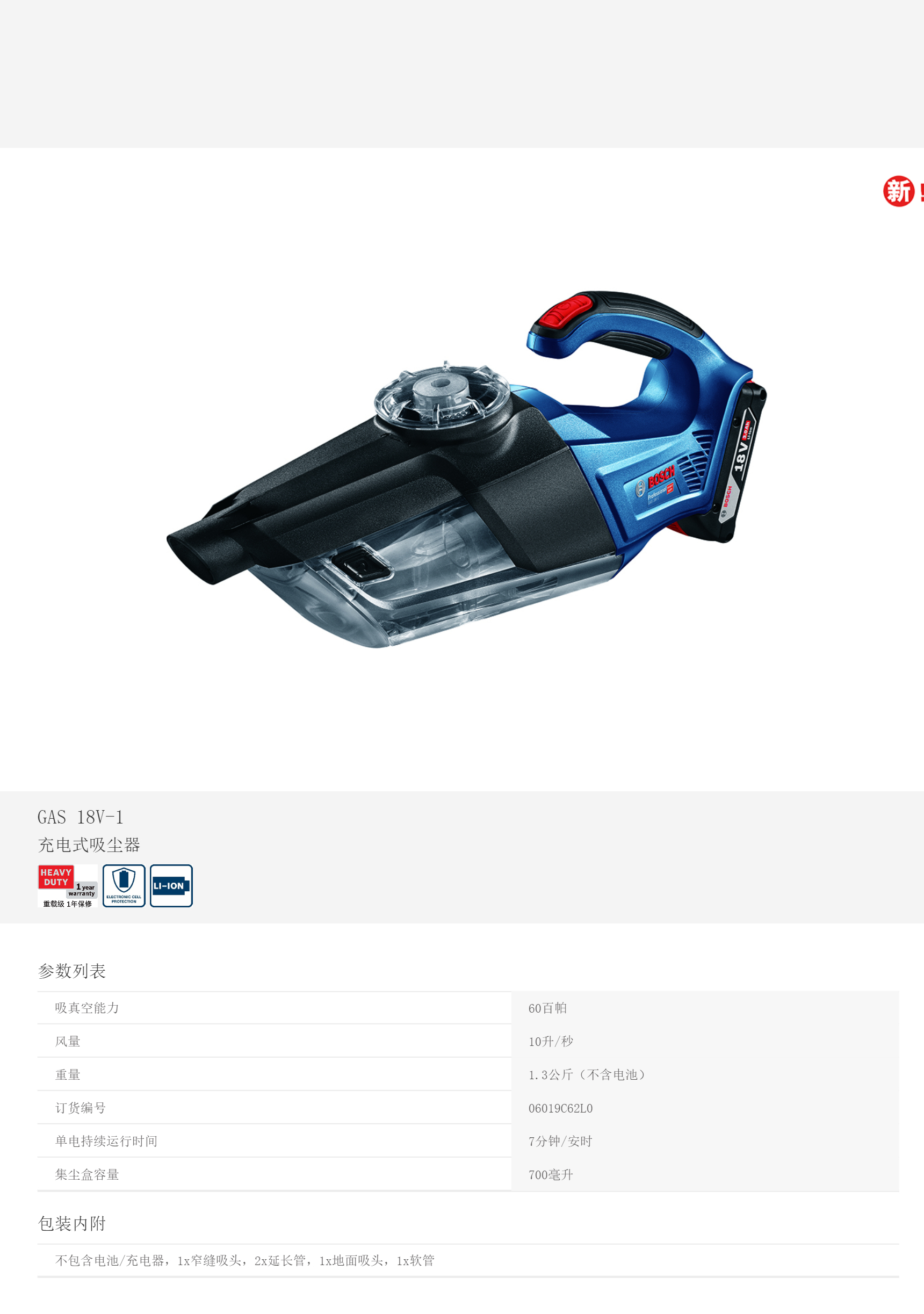首頁>產品中心>清潔設備>吸塵器>博世充電吸塵器GAS18V-1