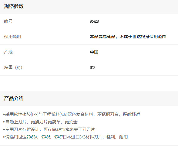 產品名字:世達橡塑柄推鈕美工刀8節18*100mm