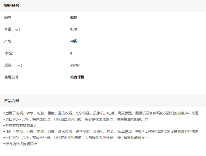 產(chǎn)品名字:世達微型一字批3x100mm