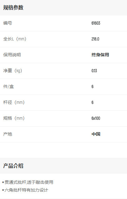 產(chǎn)品名字:世達(dá)一字穿心批6x100mm