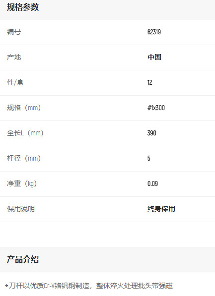 首頁>產品中心>螺絲批>十字螺絲批>世達十字批#1x300mm